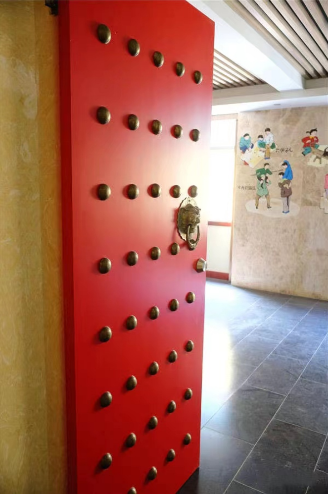 方言馆的房门模仿的是玄武门的拱门结构,木门为大红色,红门上还装饰有金黄色的门钉。