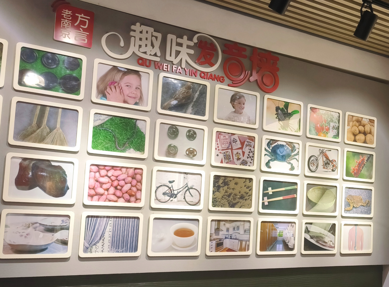 这是老南京方言趣味发音墙,通过发音墙你可以知晓玉米在老南京话里叫“油珠珠”,花生叫“生果仁儿”,螃蟹叫“八只脚”,蟑螂叫“灶马鸡”,“银角子”指的是硬币,生病叫“打岔”……