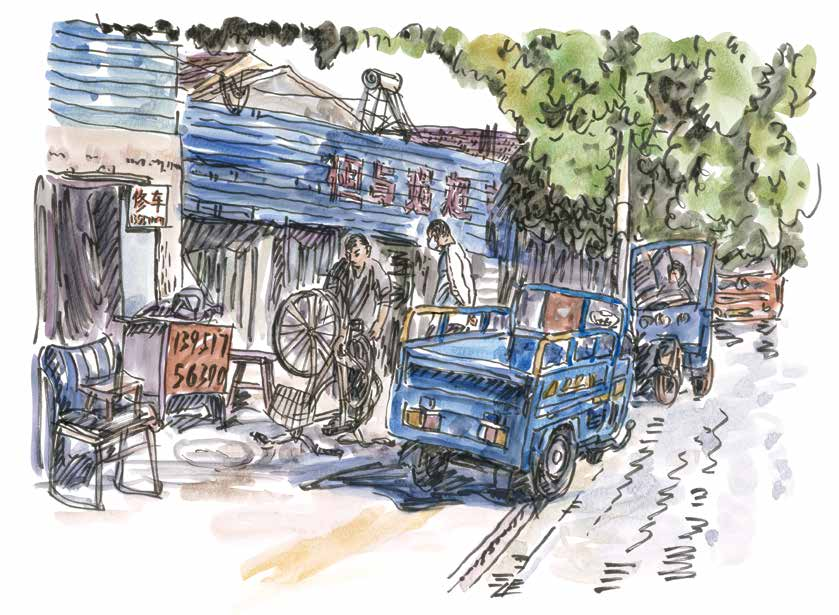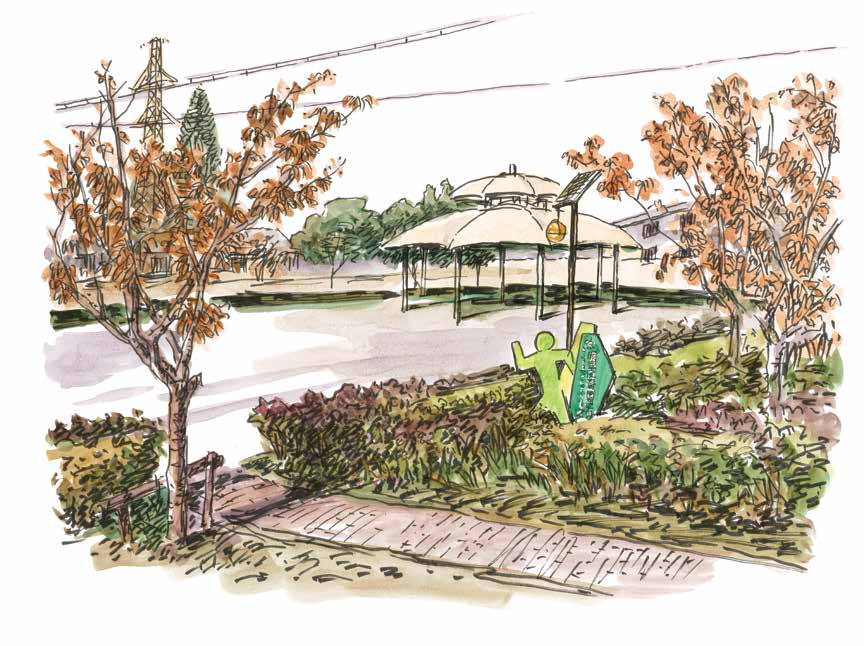 沿着宁芜公路向南,靠近顾家庄车站有一处小型休闲运动广场,圆形的白色帆布亭立于中央,围绕着四周的绿化带有一圈健身步道。像这样的休闲小广场,西善桥各个道路和社区分布有很多,大都按照因地制宜、节约高效的原则而建。广场虽然面积小、常散落或隐藏在街角或路边,被居民们称为“口袋公园”。“见缝插绿、出门见绿”正是体现细微处见品质。